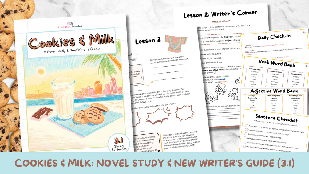 Give your child the gift of confident reading and writing with this step-by-step novel study based on Cookies & Milk by Shawn Amos. Designed for 3rd graders (or learners that need an introduction to formal writing instruction), this unit guides students through the story while teaching essential writing skills in a clear, manageable way.